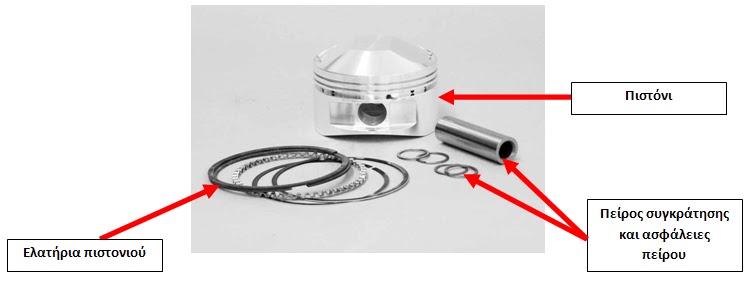 Στην παρακάτω εικόνα βλέπουμε τον στροφαλοφόρο άξονα μαζί με τα έμβολα. Οι κινητήρες που χρησιμοποιούν στροφαλοφόρο άξονα ονομάζονται παλινδρομικοί κινητήρες. Αυτό επειδή ο μηχανισμός στροφαλοφόρου άξονα εκτελεί κίνηση παλινδρομική. Όλη αυτή η διάταξη, πρέπει να λιπαίνεται γιατί οι τριβές που αναπτύσσονται είναι τεράστιες. Για να γίνει κατανοητό, όταν βλέπουμε στο στροφόμετρο του αυτοκινήτου μας 4000 στροφές/λεπτό, σημαίνει ότι ο στροφαλοφόρος άξονας κάνει 4000 στροφές το λεπτό. Στην Formula 1 οι στροφές μπορεί να φτάσουν και τις 18.000 στροφές το λεπτό. Το λάδι λοιπόν που αλλάζουμε στον κινητήρα, λιπαίνει και τον στροφαλοφόρο άξονα με τα έμβολα. Αν δεν αλλάζουμε τακτικά το λάδι στον κινητήρα μας είναι πολύ πιθανόν να δημιουργήσουμε πρόβλημα σε όλη αυτή τη διάταξη. Για αυτό είναι σημαντικό να βάζουμε λάδια που συστήνει ο κατασκευαστής και να τα αλλάζουμε κάθε 5.000 Km ή κάθε 7.500 km αν το λάδι είναι καλής ποιότητος.